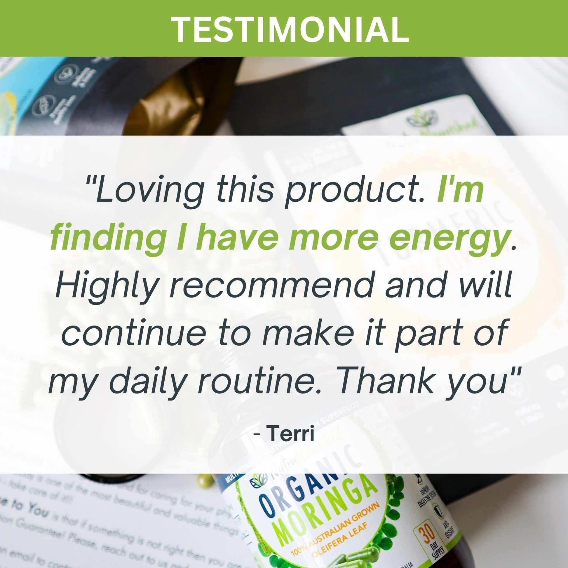 Nutra Nourished Organic Moringa Leaf Capsules are made with naturally dried Australian grown Moringa Leaf. Each capsule contains 360mg of Neem Leaf powder with 180 capsules per refill bag.