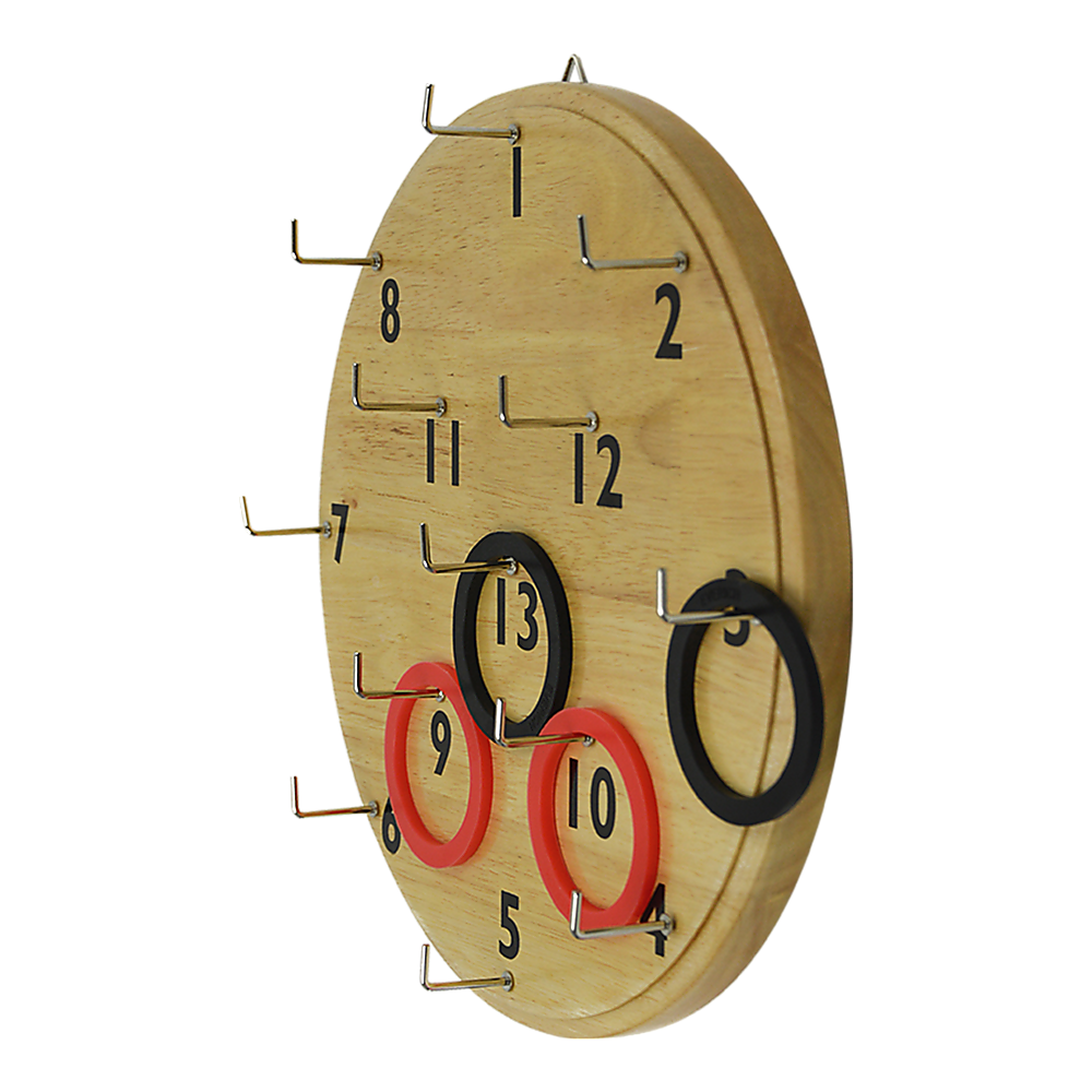 Crafted from top-quality timber, metal, and plastic, this game set is ready to go whenever you are. It's easy to install just hang it up, and you're ready to play. It makes a perfect gift for the holidays or a birthday. Or, buy it for a child who learns best through activity. She'll learn her maths skills quickly once she starts adding up her score. Don't miss out on a moment of family fun. Order your ring toss game today!