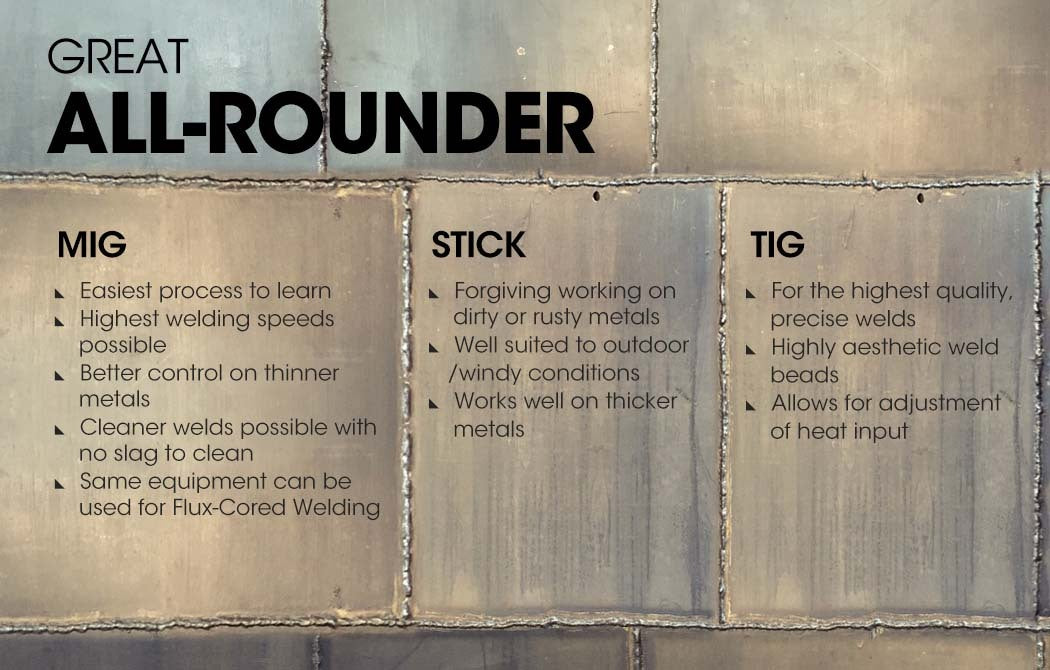 - Welds Steel, Copper, Carbon, Stainless Steel, Moly and more!