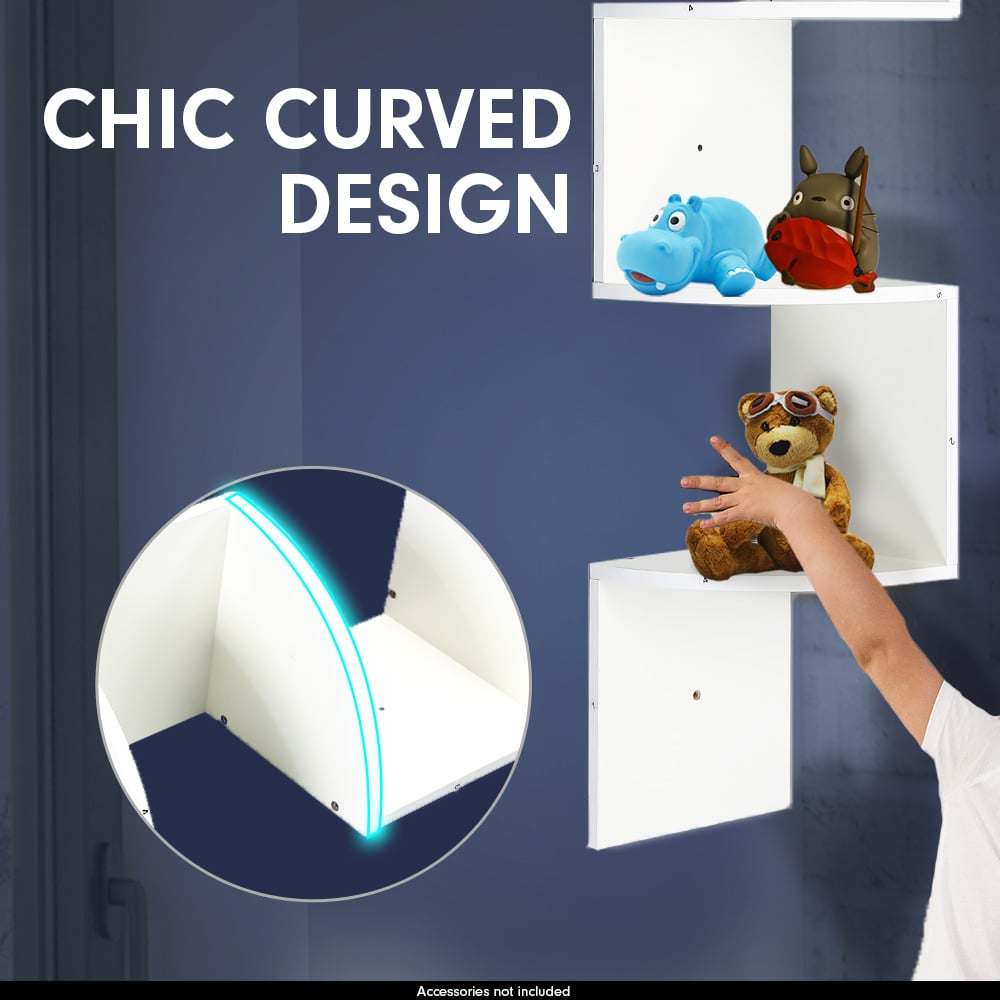 Sarantino 5 Tier Corner Wall Shelf Display Shelves Dvd Book Storag Rack Floating Mounted - White