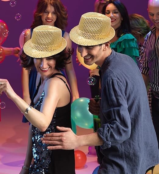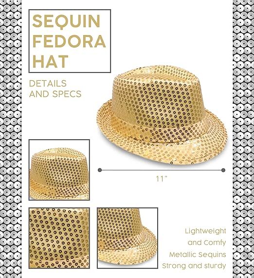 SEQUIN HAT Trilby Fedora Glitter Cap Costume Dance Party - Yellow/Gold