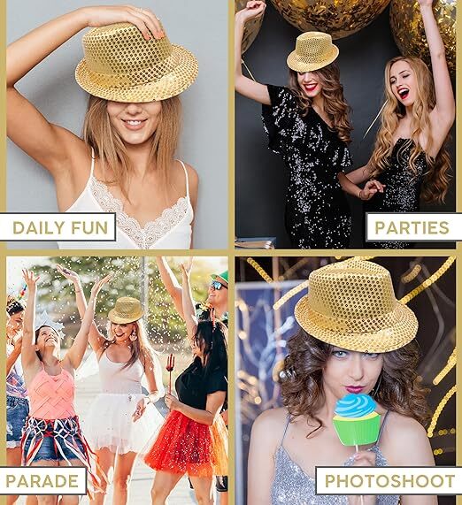 SEQUIN HAT Trilby Fedora Glitter Cap Costume Dance Party Sequinned Accessory New