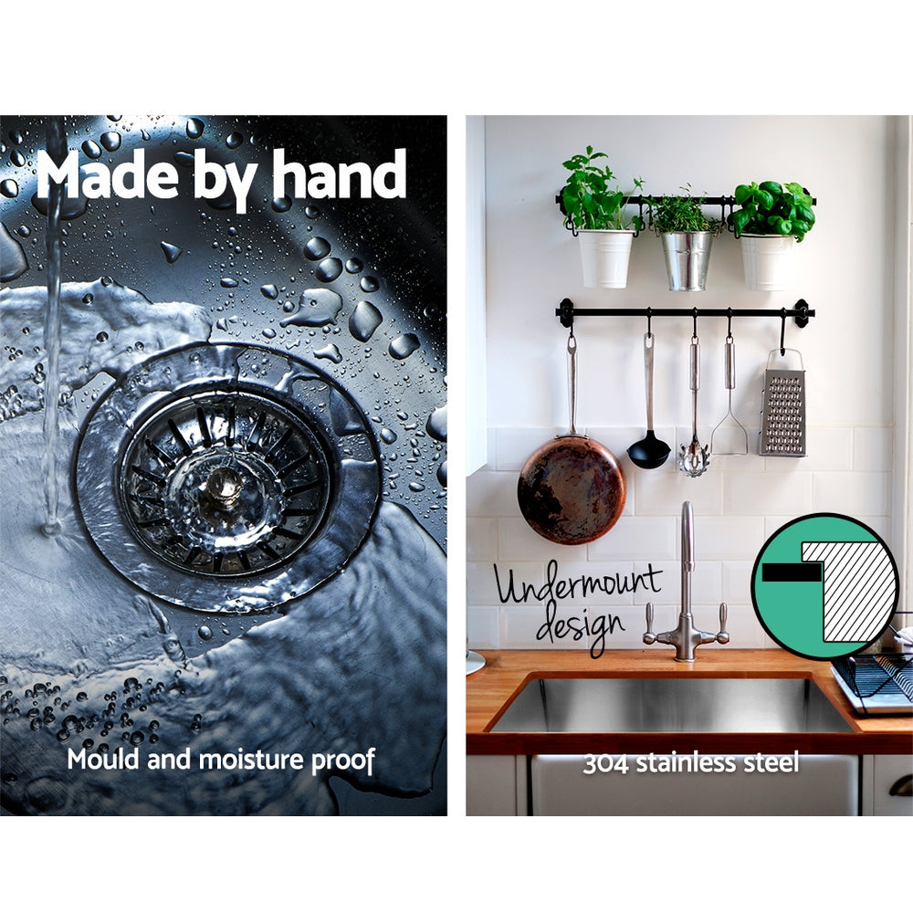 The Cefito Handmade Stainless Steel Sink is built to exacting standards so that you get the very best of quality materials and craftsmanship. It is crafted from heavy-duty food grade 304 stainless steel, unlike others that are made from inferior 201 grade or 304 imitations. Built to be scratch-proof, oil-proof and more importantly, bacteria-free, the silky-smooth satin-coated stainless-steel sink also features an X-flume design for easy drainage, deep and wide bowl for practicality, R10 rounded corners for safety and easy cleaning, eco-friendly anti-condensation paint, and five sound-deadening pads. Suitable for drop-in, flush-mount or under-mount installation, our stainless steel sink should have a definitive place in your uncompromising kitchen.