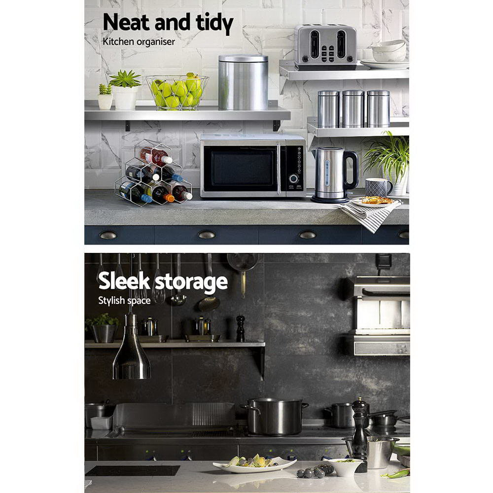 Need to add more shelf space? Display space? Lots of wall space? Perfect. Our Wall Shelf is just the thing you need to create more space without occupying more floor space. Made of durable and thick 430 stainless steel, the wall shelf is rust-proof and easy to clean which makes it perfect for use in the kitchen. It is also heavy-duty with a high weight capacity and wide enough to provide ample storage or display space for a variety of items, not just kitchen essentials. Mounting to the wall is simple with the included manual and two support brackets are provided. Install in the kitchen or any other room that needs some sleek extra shelving.