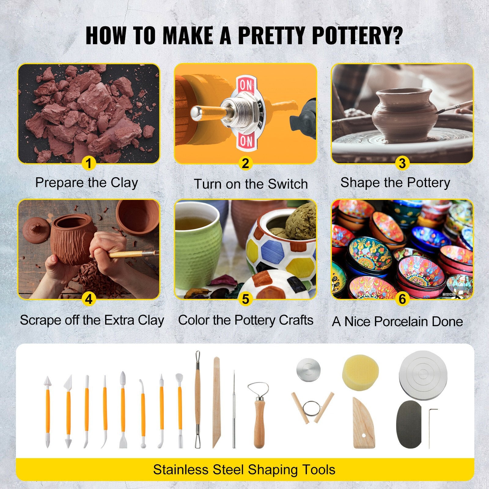 Mini Pottery Wheel, 30W 0-2000 RPM Ceramic Wheel, Adjustable Speed DIY Clay Machines, Electric Sculpting Kits with 3 Turntables Trays and 16pcs Tools for Art Craft Work Molding Gift and Home DIY