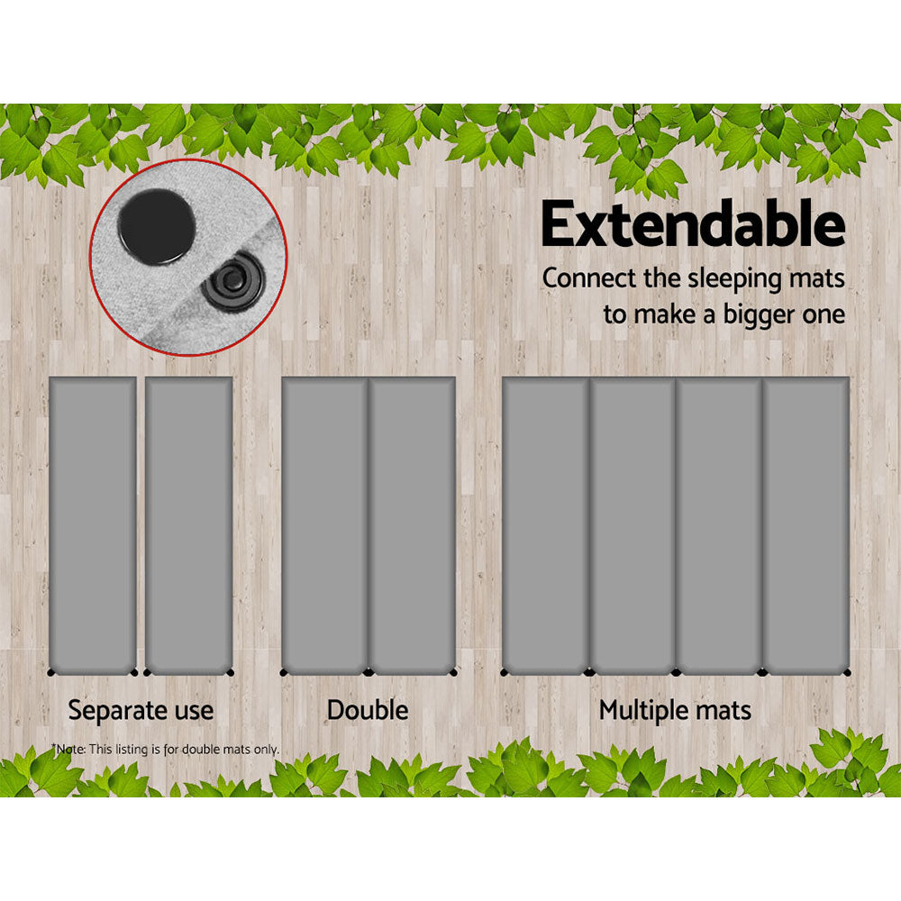 Self Inflating Mattress Camping Sleeping Mat Air Bed Double Set Grey